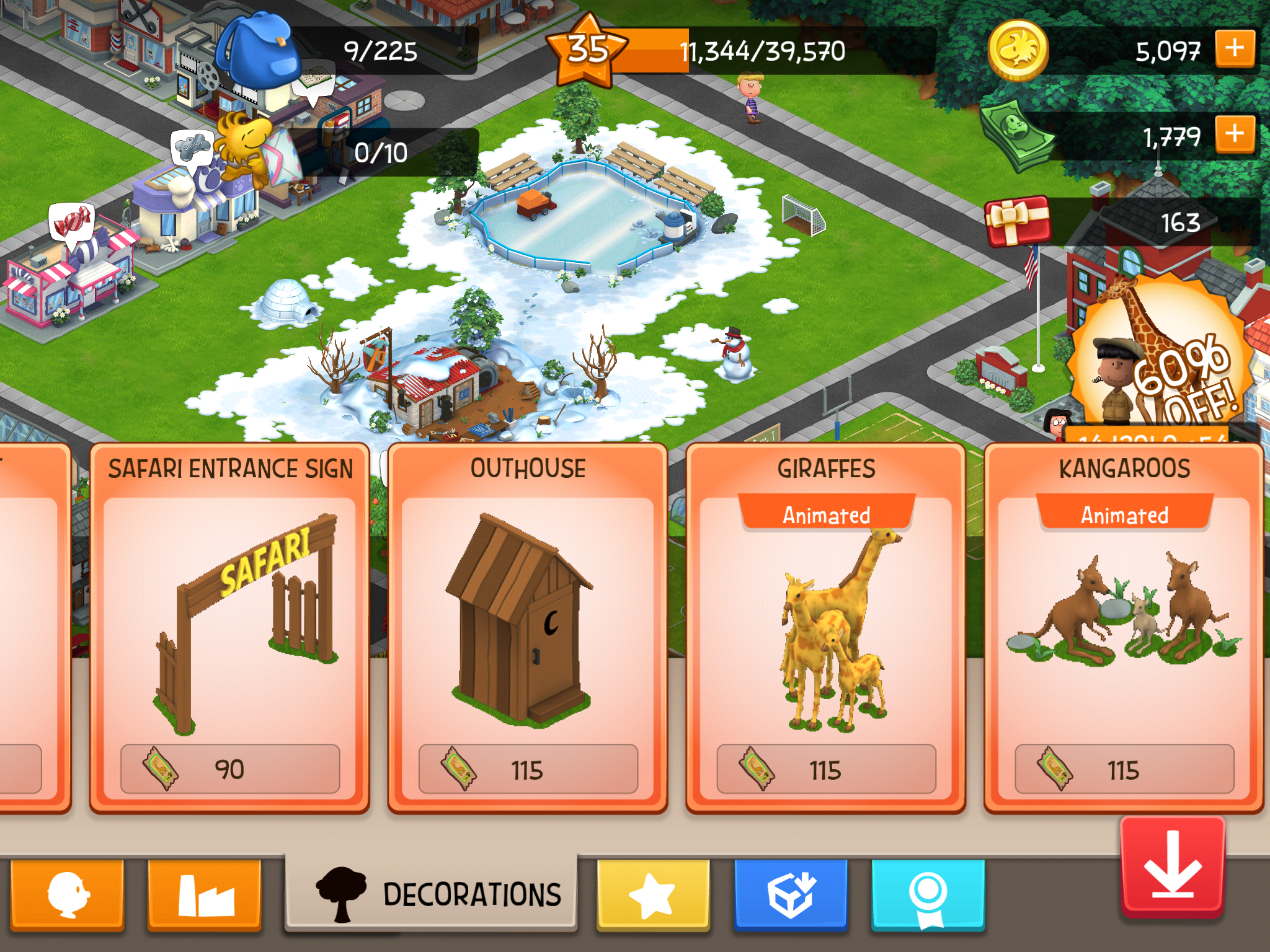 All the decorations shown on the following screen should be bought directly in the Market